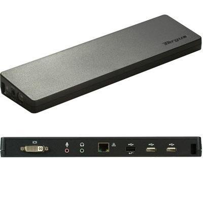 The Targus USB 2.0 Docking Station with Video is a USB based docking station with video output capability. The One Touch interface enables users to quickly connect to an external monitor, keyboard, mouse, printer, speakers or other peripherals often used at home or in the office. The docking station provides an ergonomic tilt for a comfortable typing angle and also keeps the laptop elevated, providing ventilation while in use. The device features two always on USB ports which allow users to power or charge peripherals such as a Blackberry, iPhone /iPod or camera even if the laptop is powered down or in sleep mode. The Targus Docking Station with Video allows users to make the most of their workspace with an easy connection and seamless connectivity for all of your accessories. Functionality ? USB 2.0 single connection to numerous peripherals including a monitor (DVI), network, audio and up to four USB devices ? Features ? Two always on USB ports enable you to keep charging USB devices even when the docking station is no longer connected to the laptop, or the laptop enters sleep mode ? Compatibility ? Supports monitor resolutions up to 2048 x 1152; Windows XP and Vista Compatible; AC adapter required ? Ergonomics & Cooling ? Raised laptop platform provides typing comfort and improves airflow for cooling ? RoHS Compliant ? Yes Product Name: Targus USB 2.0 Docking Station with Video Unit Dimensions: 10.63 x 3.15 x 1.18