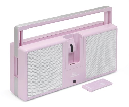 - Portable pink iPod boombox with pair of 4-inch, ported full-range speakers