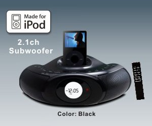 iPod Dual Alarm Clock, MP3-SD-USB & AUX-IN Boombox, FM Portable Radio, Multi-Media Player, 2.1CH Subwoofer Compact Music System (Black) Review